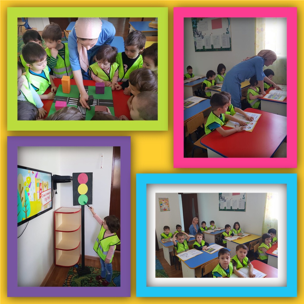 На занятии прочитали стихотворение о светофоре и дорожных знаках. Беседовали о безопасном поведении на дороге. Отгадывали загадки. Рассматривали картинки, иллюстрации с изображением дорожной ситуации.