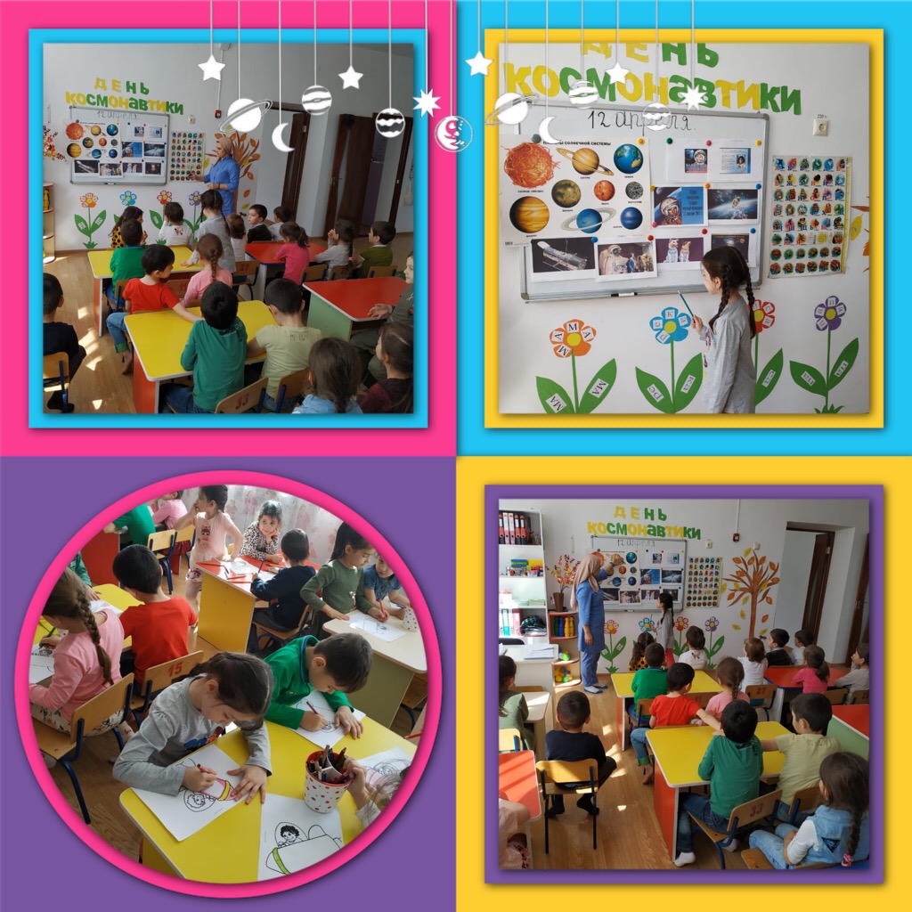 Во всех возрастных группах были проведены тематические беседы, на которых ребятам рассказали о первом в мире покорители космоса, о космическом снаряжении и питании в космонавтов.